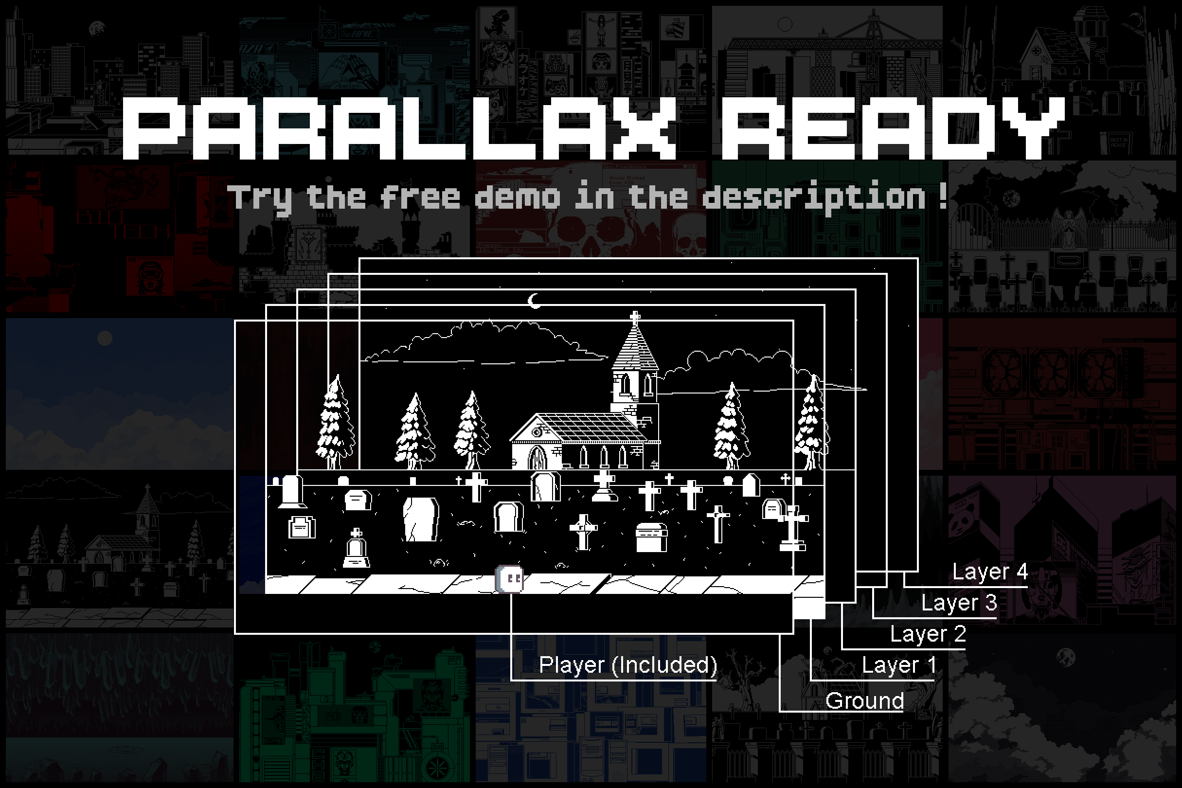 | Tags | 1-bit, 2D, Atmospheric, Backgrounds, Dark, parallax, Pixel Art, Retro, seamless, Simple |
