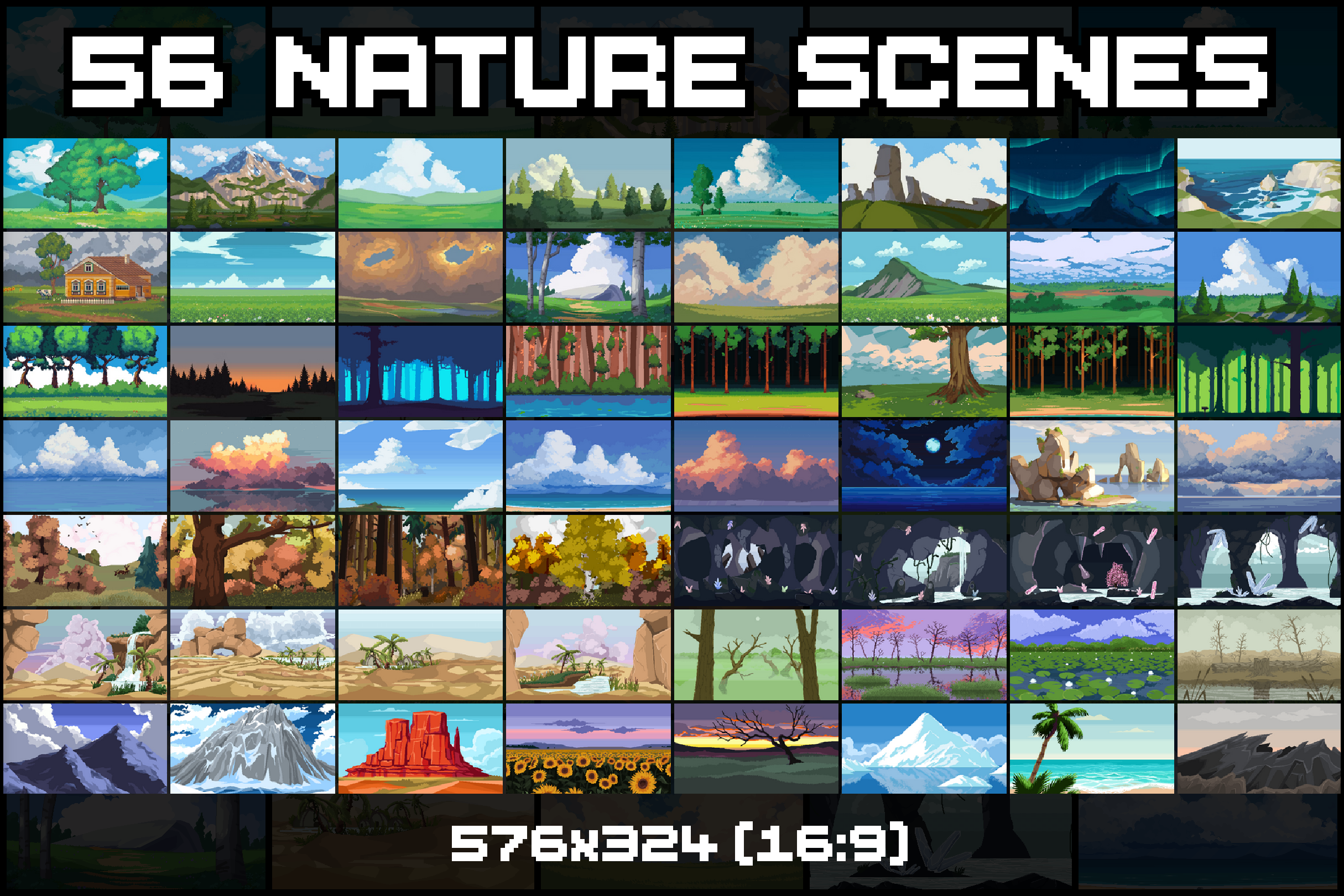 56 Nature Backgrounds Pixel Art